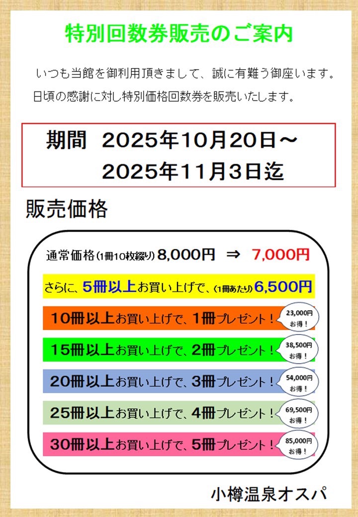 さらにさらにまとめて買うと回数券のプレゼントも!!